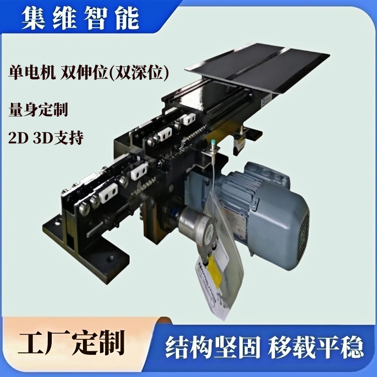 伸缩货叉是一种物料搬运工具或移载机构,是自动化智能仓储系统中集精密机械、传动、导向、控制、及传感技术于一体的一个执行机构,常配合提升机构同时使用,具有双向自动伸缩功能、准确的定位(限位)功能,可轻松将物料从一侧搬运或移载至另一侧!