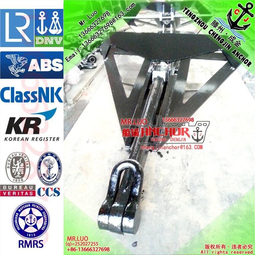 滕州成金船锚专业生产斯贝克锚,霍尔锚,海军锚,日本无杆锚,CJD-14 德尔塔大抓力锚(三角锚),CJT-20 (TW波尔)大抓力锚,CJ-17大抓力锚(MK5海工锚),丹福尔锚,我公司可提供ABS, BV, CCS, DNV, NK, GL, LR, RMRS, KR, 等普通锚船检证及大爪力锚船检证,欢迎订购!!