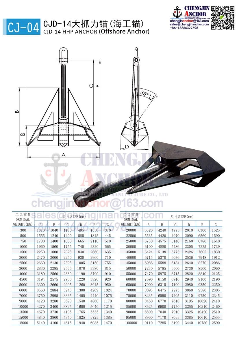 CJD-14大抓力锚(德尔塔锚)300公斤- 100000公斤