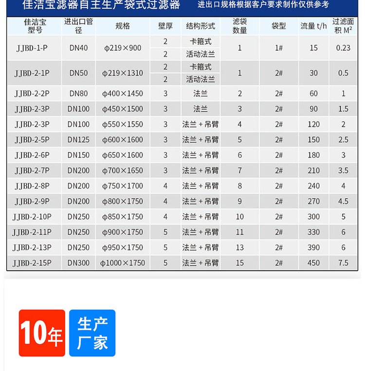 | 滤料类型 | PP滤袋 | ||