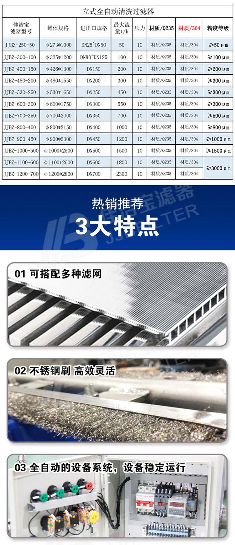 | 滤芯材质 | 不锈钢304、316L | ||
