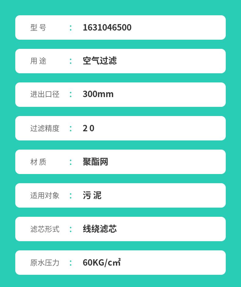 | 污泥 空气过滤 原水压力60KG/c㎡ 适用机型多 富达LF250-M滤芯 型号 | 1631046500 | ||