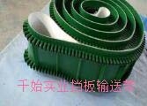 裙边输送带分为:有裙边无隔板输送带和有裙边有隔板输送带两种。能使各种散装物料以0-90度作任意倾角连续输送、具有输送倾角大、使用范围广、占地面积小。无转运点、减少土建投资、维护费用低、输送量大等特点,解决了普通输送带或花纹输送带所不能达到的输送角度。波状挡边输送带可根据要求设计成一套完整输送系统,避免了间断输送和复杂输送的提升系统。