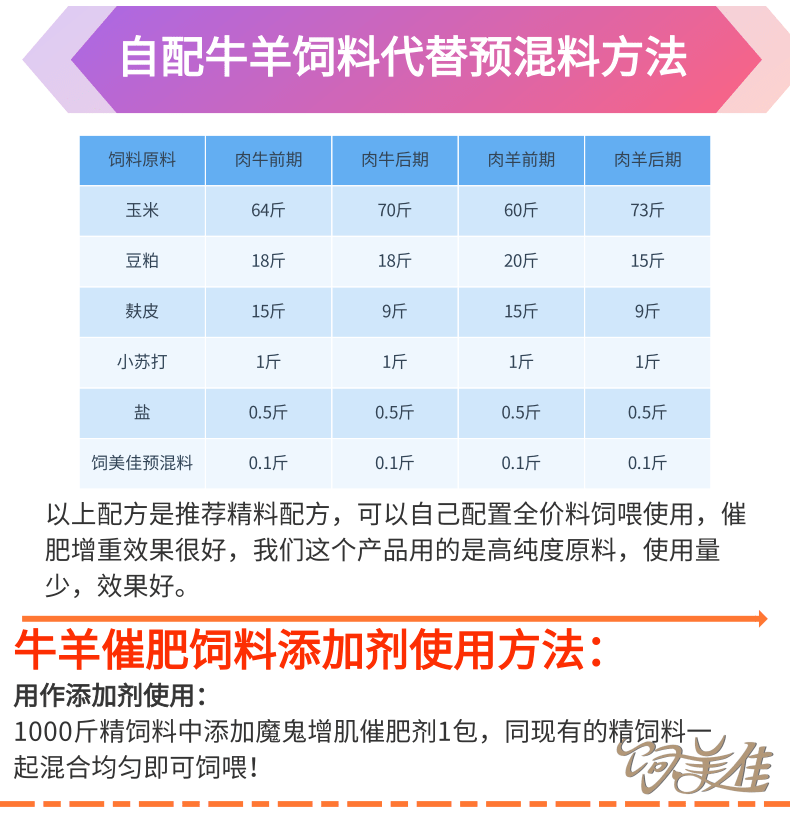 | 产品作用 | 改善牛羊体型、提高日增重 | ||