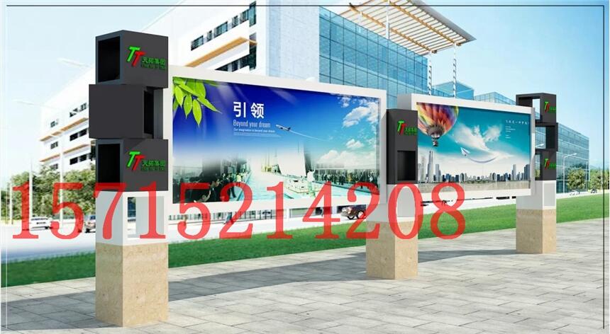 立柱:采用抗震系统部件,使本案产品具有较强的抗震性能。河北滚动灯箱 公交站台宣传栏幼儿园宣传栏定制