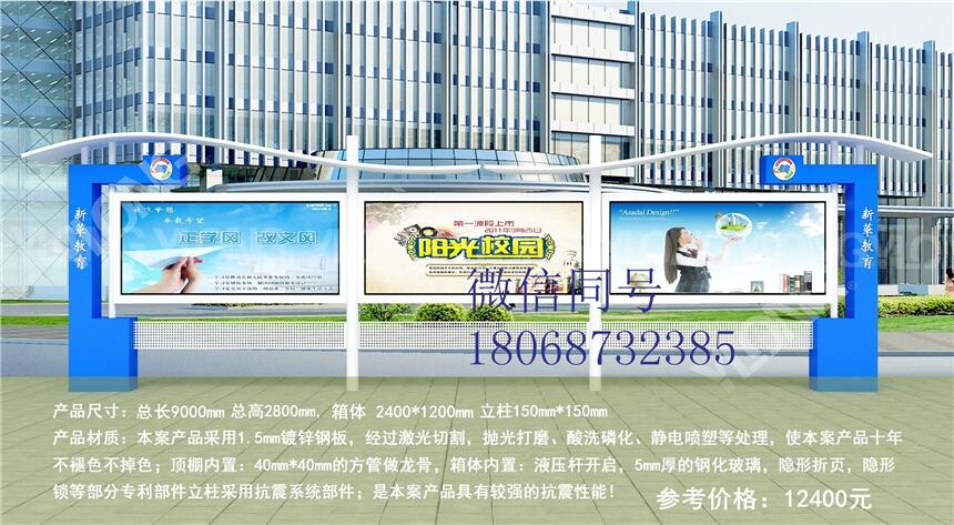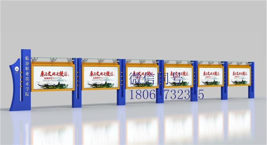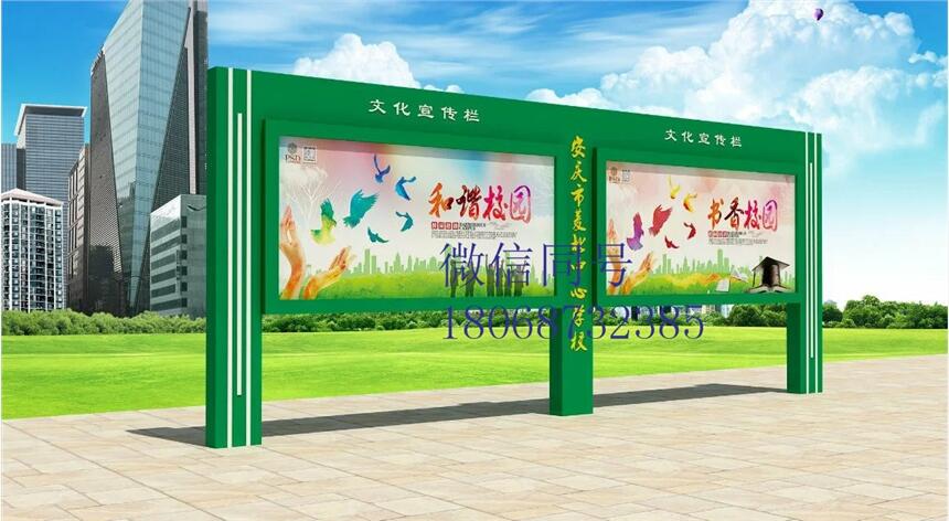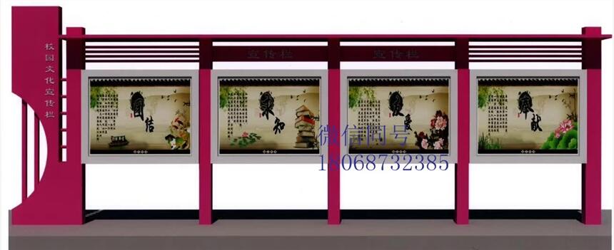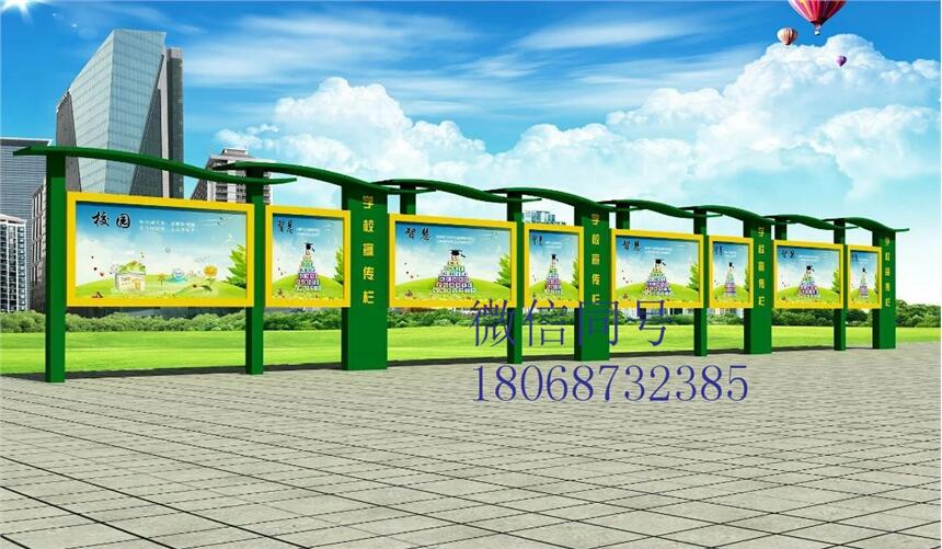 正是由于我们的镀锌板宣传栏及不锈钢宣传栏产品质量过硬。所以很多公司企业和单位找我们公司做宣传栏。我们从事过大量的宣传栏的案例。例如:滕州学校镀锌板静电喷塑宣传栏,泗州学校镀锌板静电喷塑宣传栏,青海西宁镀锌板宣传栏,连云港医院宣传栏以及徐州公交宣传栏等等。我们还为很多企业和政府提供宣传栏服务。例如徐州部队不锈钢宣传我们是宣传栏制作生产厂家为您提供各类定制款室内外宣传栏,广告灯箱,公交候车亭,太阳能灯箱,LED灯箱,旗杆,花草牌,广告机等。产品特点: 1、制作灯箱材料:不锈钢、镀锌钢板.冷轧板、塑钢等; 2、制作面板材料:钢化玻璃、有机玻璃、耐力板等; 3、宣传栏开启方式:液压支撑杆,节省人力,双面开启; 4、宣传栏制作备选设备:滚动系统、路名牌、LED; 5、宣传栏型号外观:结构合理、美观大方、经久耐用; 6、宣传栏规格大小:自由选择、定制; 7、定制滚动功能:可换画2~10幅,画面停留时间可任意设定,自动开关机,自动循环运转 8、箱体数控设备生产,机械精度高,工艺有保证,防水,防尘,抗静电设计; 9、宣传栏外观设计:颜色任选,喷塑、喷漆;挂壁式、落地式、吊装式、组合式;10、定制画面:单面转画、双面转画、单面固定、双面固定;画面材质为高精度数码丝印(防水、防紫外线照射)。 11、宣传栏制作灯箱材质:不锈钢板、镀锌板、冷板烤漆; 12、宣传栏箱体视窗材质:PC耐力板、钢化玻璃。