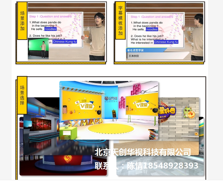 一体化微课慕课系统 微课录课室制作搭建是通过天创华视校园虚拟演播室系统进行叠加字幕LOGO、采集、录制、制作、网络直播、高标清虚拟抠像、多画面、远程控制等功能。配合教师准备的教材,就可以将教师人像结合在任何教学所需的场景。使用提词器,老师可直接观看自己合成后的画面并调整位置。就可以录制多样化的课程节目了