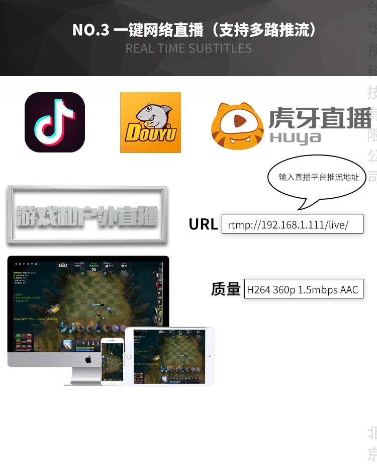 直播机支持至少4路高/标清rtmp、rtsp.udp.http、ip等流媒体视/音频信号拉流直播。