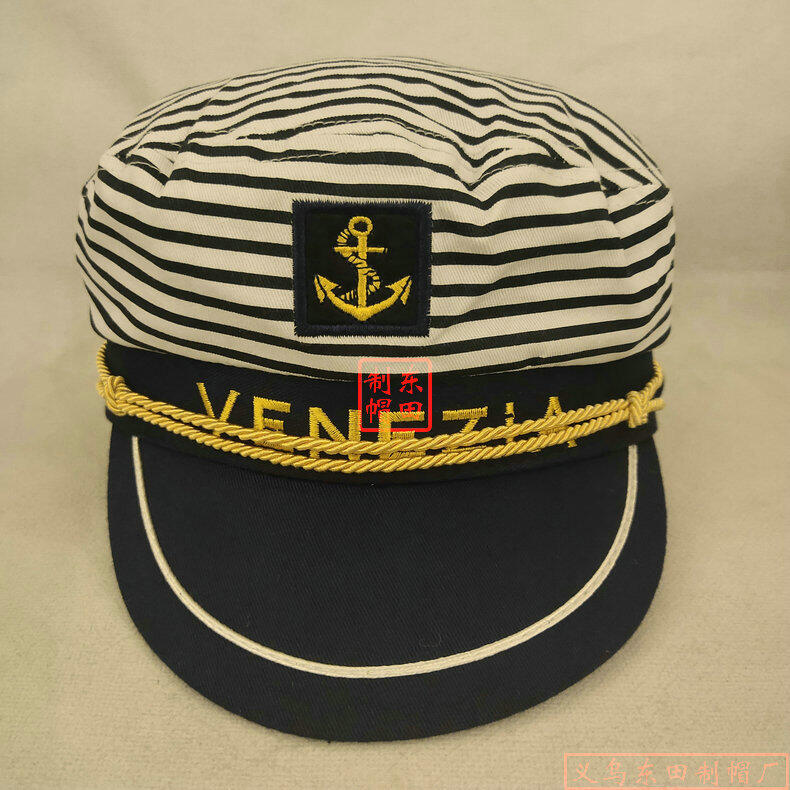 Captain cap gift white embroidery navy cap foreign trade in Europe and the us interest flat-topped cone salon sailor hat custom hats wholesale party