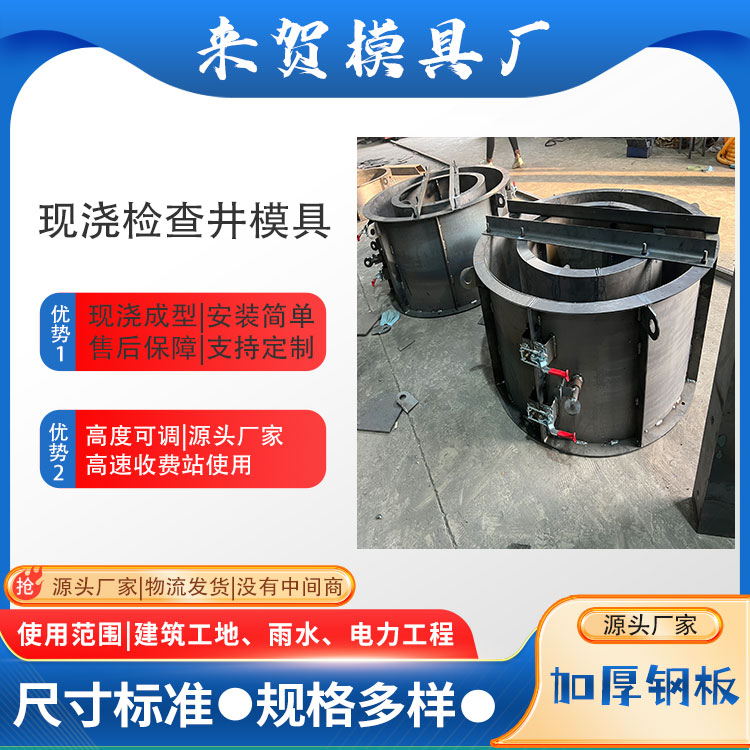 检查井模具的设计是整个生产流程的起点,其精度直接决定了最终产品的质量。优秀的模具设计需充分考虑地下管线的布局、荷载要求、环境适应性以及未来维护的便捷性。通过精确计算井体尺寸、壁厚、预留孔洞位置等参数,确保模具能够生产出既符合国家标准又满足实际需求的检查井。此外,设计时还需考虑模具的耐用性、易脱模性和生产效率,以降低成本,提高生产效益。