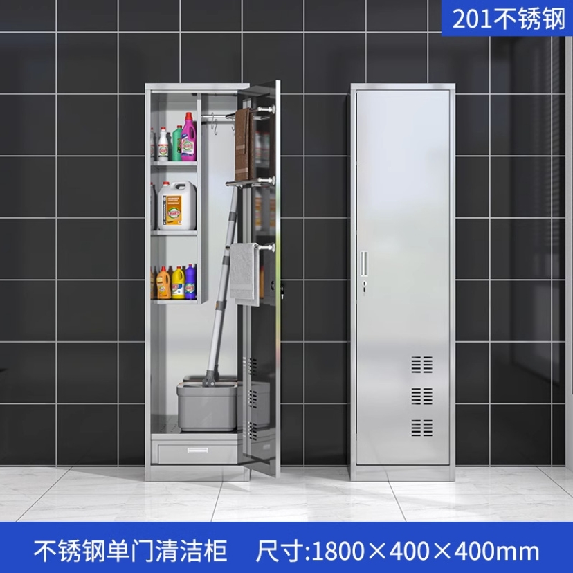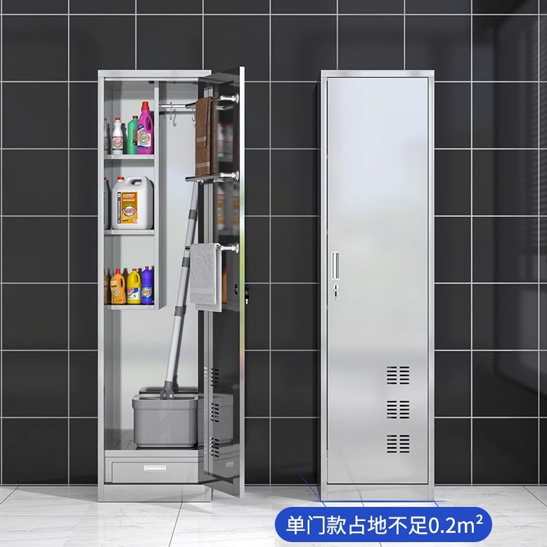 304不锈钢清洁柜单门卫生扫把柜杂物柜教室拖把扫帚保洁工具柜