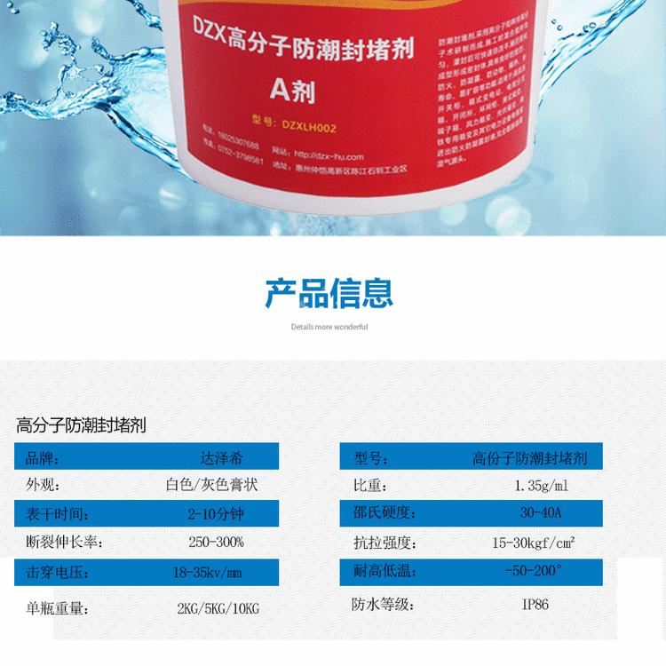 | 规格 | 高分子防潮封堵剂 | ||