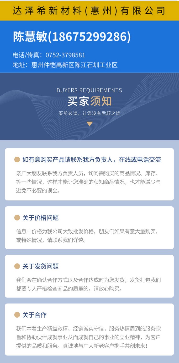 商铺名称:达泽希新材料(惠州市)有限公司