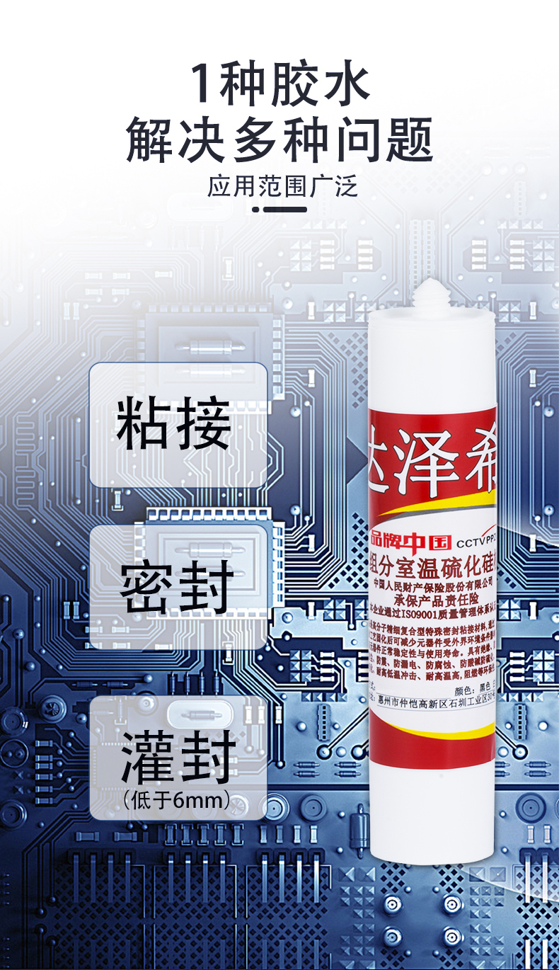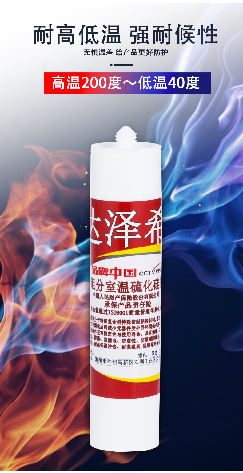 达泽希704硅橡胶耐温电器线路板元器件粘接固定单组份黑色密封胶