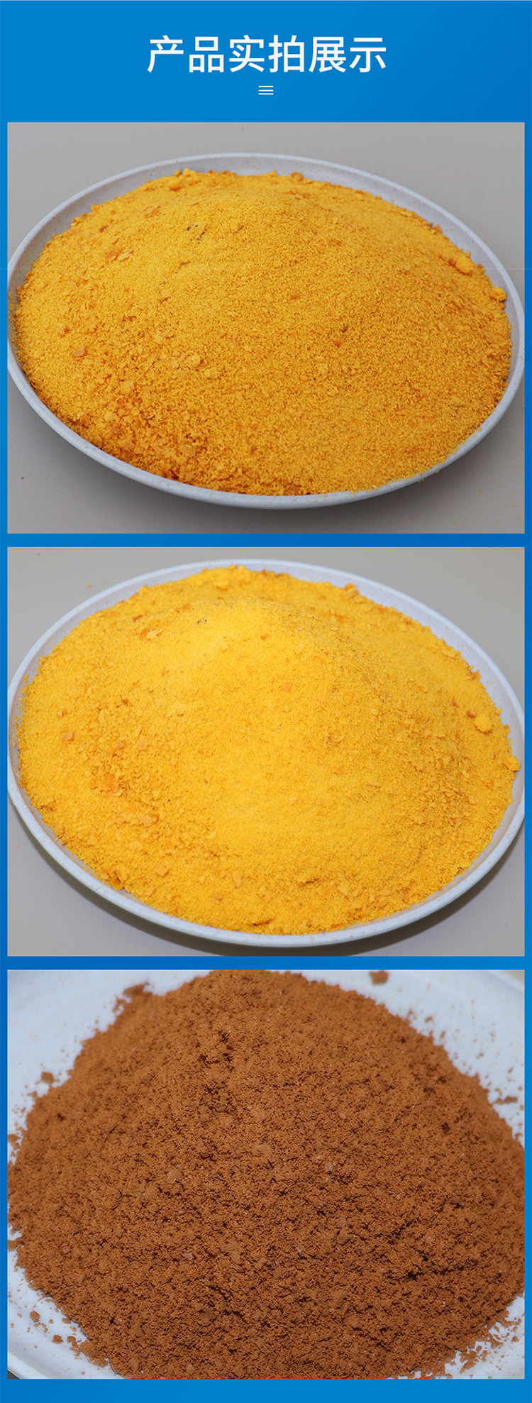 | 外观 | 金黄色、土黄色、褐色颗粒细粉状 | ||