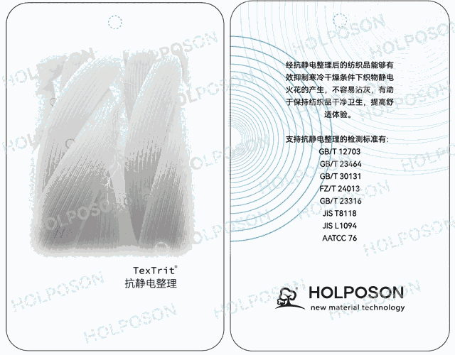 抗静电整理剂 HOLPOSON® Thor适用于合成纤维及天然纤维的抗静电剂;主要成分是特殊的改性季铵盐,性能稳定,能与大部分硅油同浴使用,不影响面料风格,具有优良的吸湿导电性和防尘性。