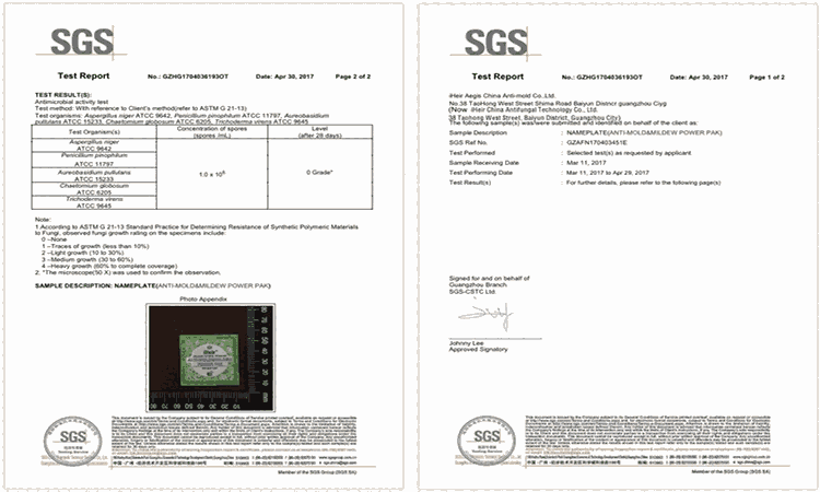 经过 SGS/TUV 等多家检测部门实验及实际应用证明环保的 Power Pak 防霉除臭片可在 12 个月内持续发挥作用。有效地保护被防护物品在使用期内不发生任何的霉变。其毒性比食盐性还低、不含DMF(富马酸二甲酯)、符合欧盟REACH,安全环保,不同于其他任何防霉产品,对皮肤无刺激,对环境无污染,并获得绿色环保认证证书。Power Pak 防霉除臭片采用缓释技术,让防霉因子持续作用,杀灭霉菌,效果显著,环保安全。Power Pak 防霉除臭片完全符合美国试验与材料学会 d4576-86(1996 批准)的抵抗霉菌测试标准。
