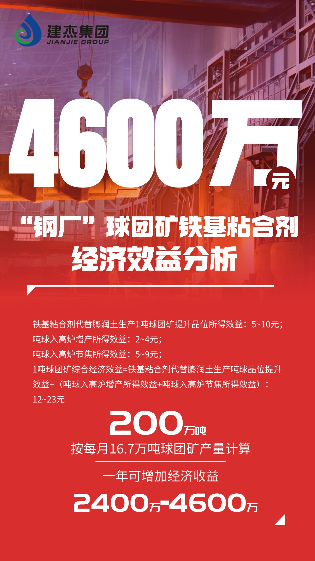 该新型铁基球团粘合剂,能够有效地部分或完全取代国内普通膨润土,能够快速提高生球强度和成品率及生产效率,并且能够有效地降低球团矿的成本,增加高炉炼铁效益。因此,国内已有十多家钢铁企业球团生产线使用了我公司铁基新型粘结剂,并取得了良好的经济效益。