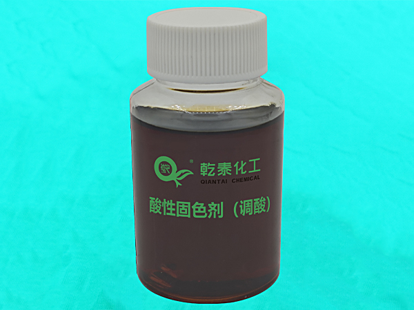酸性固色剂(调酸)是用于提升尼龙及尼龙荧光染色布湿润坚牢度的纺织助剂。使之在日晒及其他处理中不易变色,手感硬化少,特别是本固色剂的溶解性良好,制品粘度低,作业效率高对于棉、涤纶等其它荧光染色布理论上有效果。