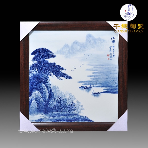 景德镇青花山水瓷板画的制作工艺可以是手绘、贴花和打印三种,每一种制作工艺都独具特色,与其他人物和花鸟画面的瓷板画相比,青花山水瓷板画属于大众普遍接受度较高的一种,因为青花山水瓷板画有着比较传统的画面,适合各种场所、各种用途,不管是装饰在书房、办公室、展厅、酒店、宾馆还是客厅都特别适合,而且青花山水瓷板画还可以作为大件乔迁礼品、庆典礼品馈赠亲朋好友,青花山瓷板画水具有素净典雅的不凡气质,能够给环境增添浓浓的艺术气息,古朴雅致,韵味十足。