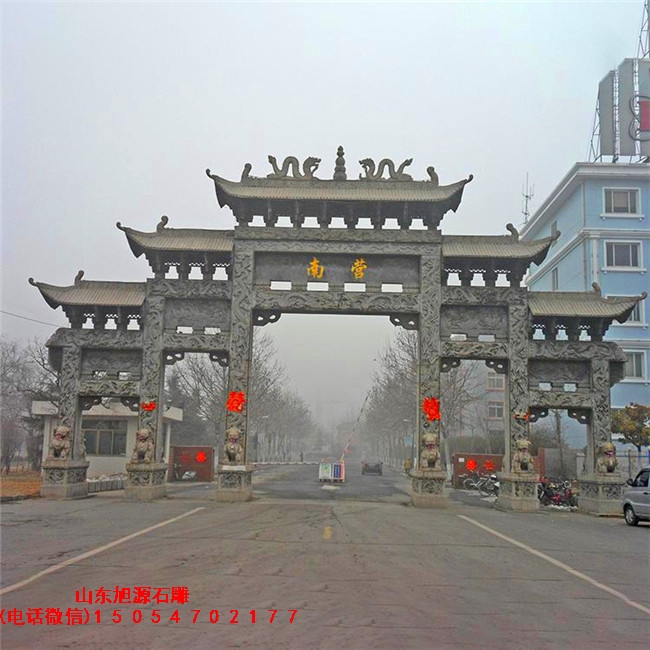 农村入口牌楼也叫村庄入口牌楼或者村庄入口石门,常见的农村入口牌楼一般修建于村庄的出入口或者祠堂入口以及农村广场入口,知道了农村入口牌楼样式和修建地点,那么农村入口牌楼样式有哪些呢?下面就有嘉祥县旭源石雕厂对农村入口牌楼样式大全进行详细的介绍,乡村石块大门牌楼基本的制做。这就必须勘测当场地貌土层,石牌楼厂家依据乡村石块大门牌楼设计图纸,测算净重规格,得出路基工程施工方案,以确保乡村石块大门安裝后,找不到因地形高低不平或土层绵软等缘故,导致路基形变的状况。