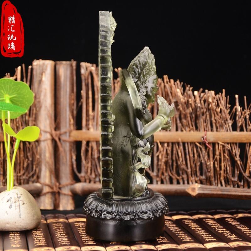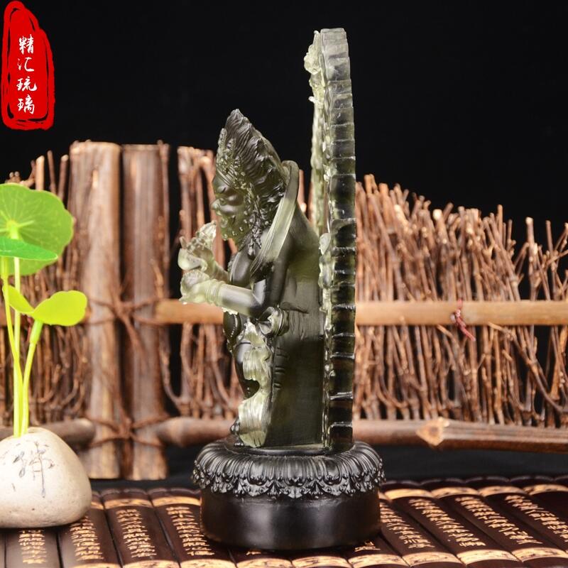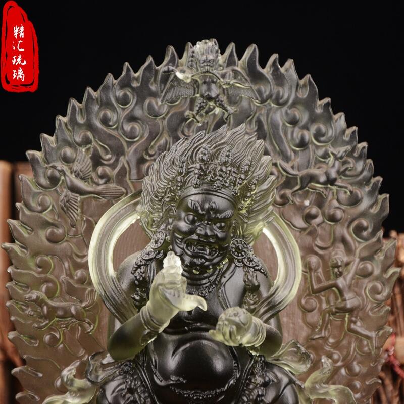 琉璃,是指用各种颜色的人造水晶为原料精心制作的水晶作品,采用古法在高温1000℃以上的火炉上,将水晶琉璃母石熔化而自然流向凝聚成高贵华丽、天工自拙的琉璃。其色彩流云漓彩、美伦美焕;其品质晶莹剔透、光彩夺目。因全部制作过程需经过数十道手工精心操作方能完成,稍有疏忽即可造成失败或瑕疵,故此自古以来一直是皇室专用,对使用者有极其严格的等级要求,所以民间很少见。