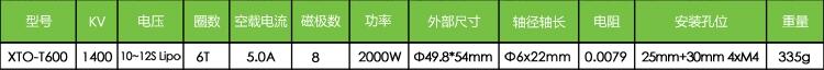 型号 XTO-T600 额定功率 2000(W)