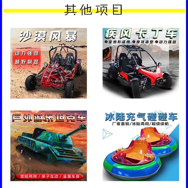 电瓶碰碰车的外形与地网碰碰车类似,不过它是以蓄电池为电源,电动机驱动电池来开展的游乐项目。对于投资者来说,电瓶碰碰车既不需要像地网一样进行前期地板的铺设,只要是平整的地面就可以了;也不像天网碰碰车在运行的时候容易散落火花,更加一些。凭借这些优势在这款设备推出以来,就一跃成为各大公园、广场、社区等地市场占有率较高的游乐项目。