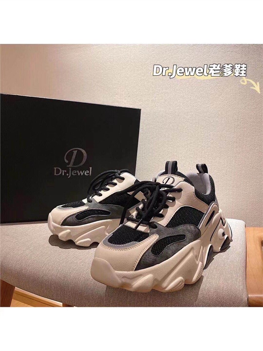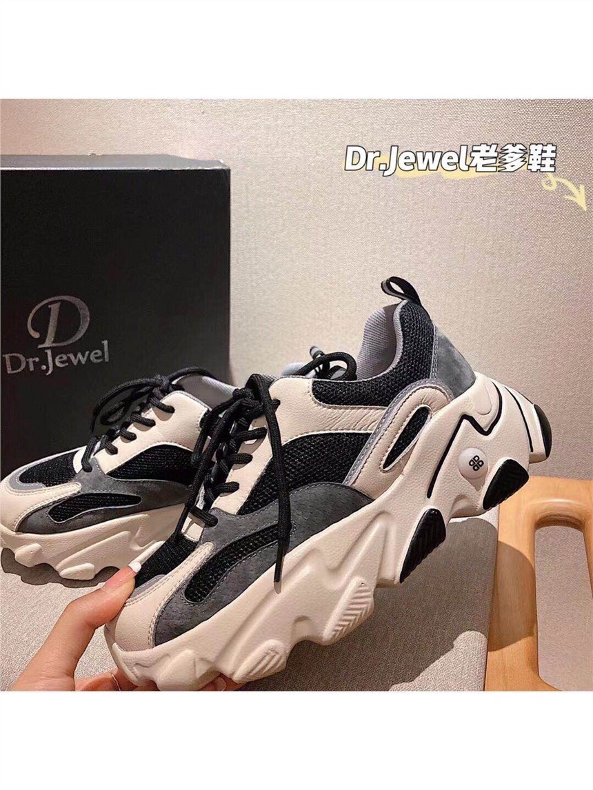 新款虎牙老爹鞋,左萱右菲家又出新款虎牙老爹鞋啦,黑、米、灰经典配色。穿上立增高6cm,显腿长,真皮鞋面透气又舒服。可以贯穿你一年四季的老爹鞋,一定要选品质好的,给双脚舒适的体验,选择优质的鞋子,找我左萱右菲家准没错。简简单单拼色的新款虎牙老爹鞋,深得众多小姐妹的喜爱,因为它真的是百搭款。不管穿什么衣服都自成一种风格。经典配色不挑身材,随便搭配超级容易。正品dr.jewel虎牙老爹鞋,左萱右菲家独家所有!