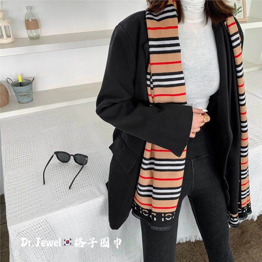 新款巴宝莉风DR格子围巾条纹围巾披肩秋冬款围巾女,穿搭拍照百搭神器