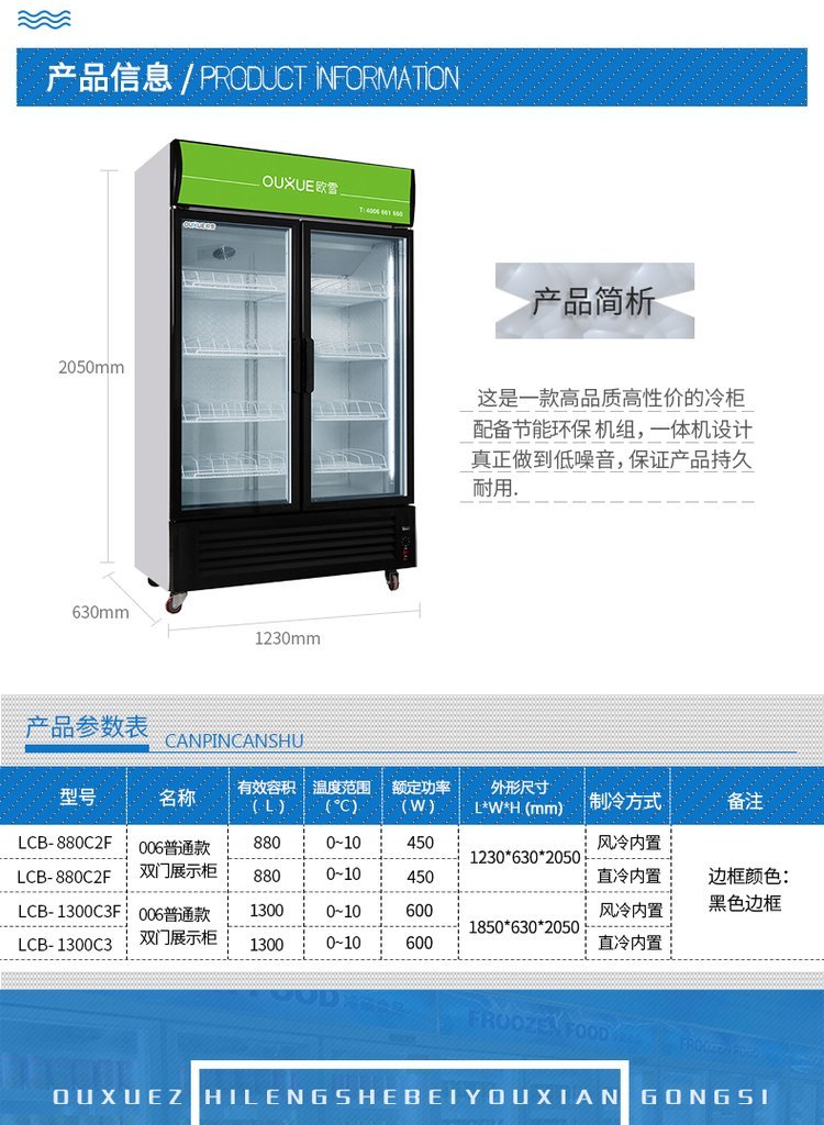 | 货号 | 006冷藏展示柜(黑边框普通款) | ||