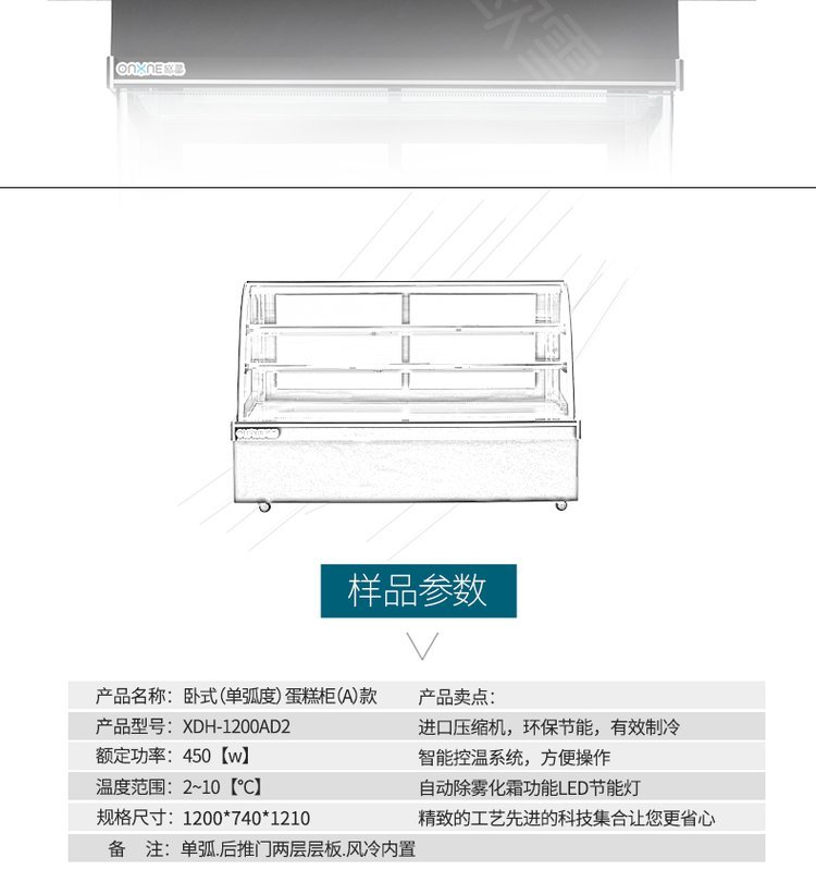 | 名称 | 卧式(单弧度)蛋糕冷藏展示柜(A款) | ||
