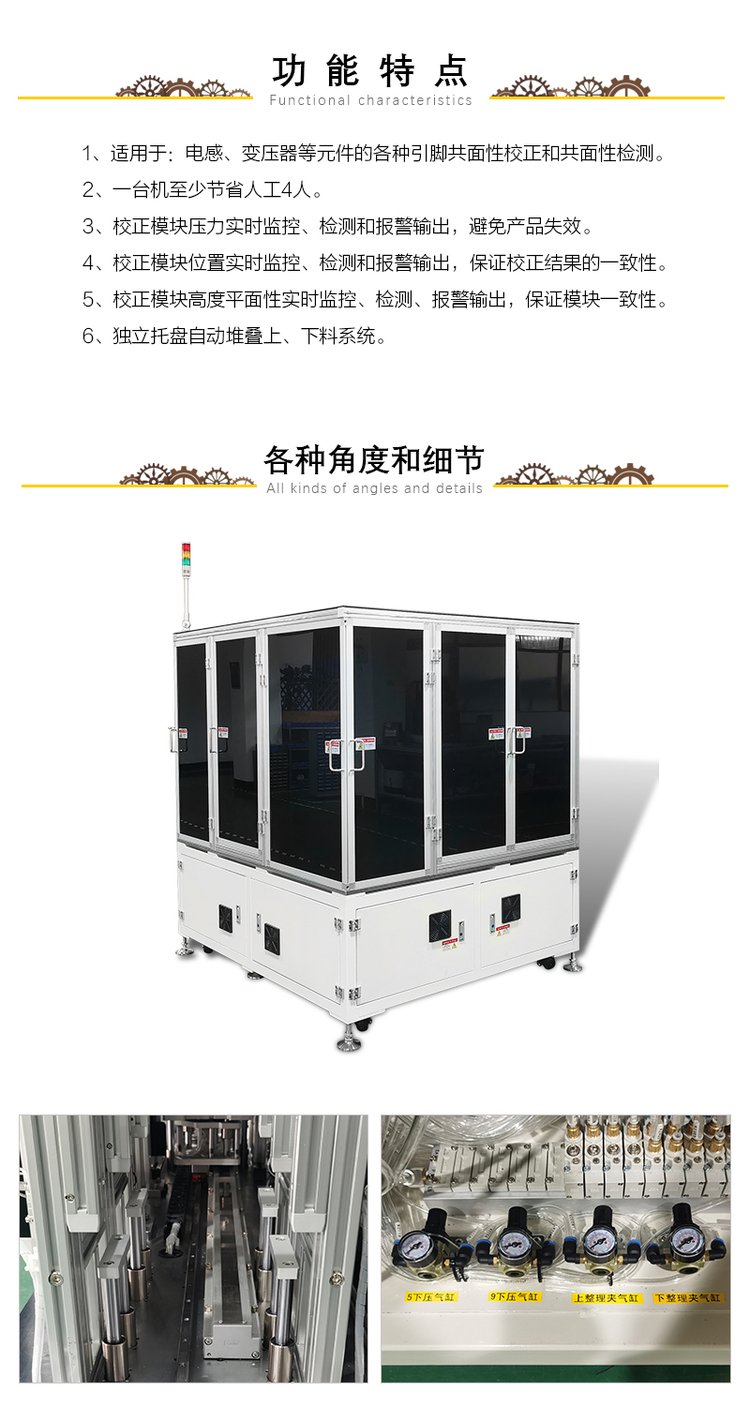 | 适用领域 | 适用于电感、变压器等元件的各种引脚共面性校正和共面性检测 | ||