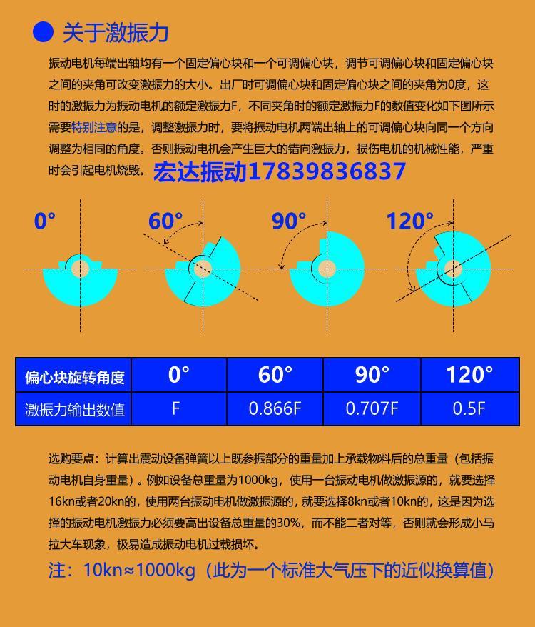 5)无极调节:振动电机两端的激振块上标有精确的刻度盘,可以非常容易的调节激振力及工作力矩从零到大的无极调节,满足工作需要。