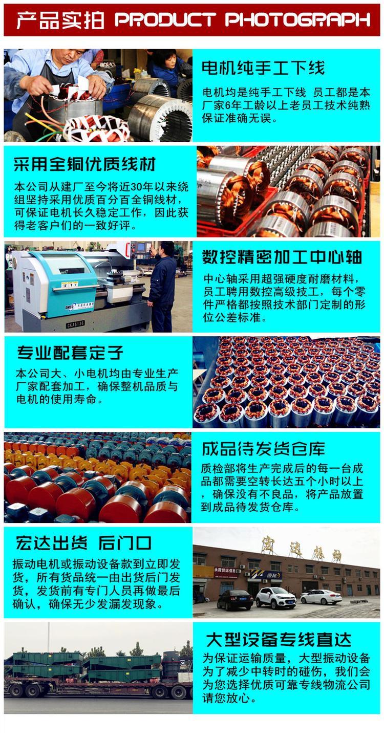 ? ? ? ?宏达电机公司出售所有电机线包均为国标100铜芯、机壳为球墨铸铁、消失模工艺。一年内三包服务,终身维修。大型振动电机,机械,上门调试。