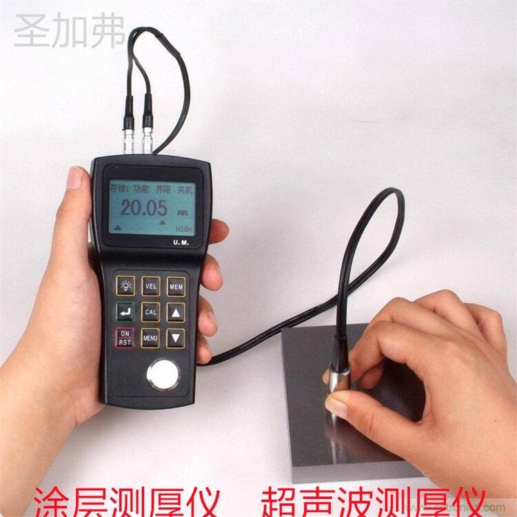 适用于各种材料的厚度测量需求,可应用于各种金属(钢铁、铝、铜、不锈钢等)石英、玻璃、塑料等材质的厚度测量。只需要将探头放置于被测物体一侧的接触面上,既可以迅速准确测量出被测物体厚度。