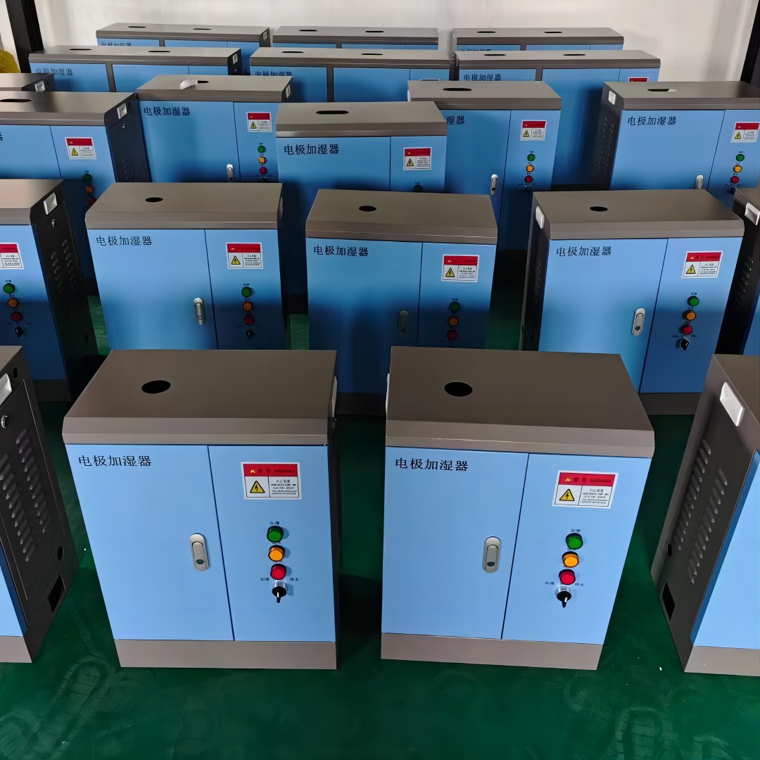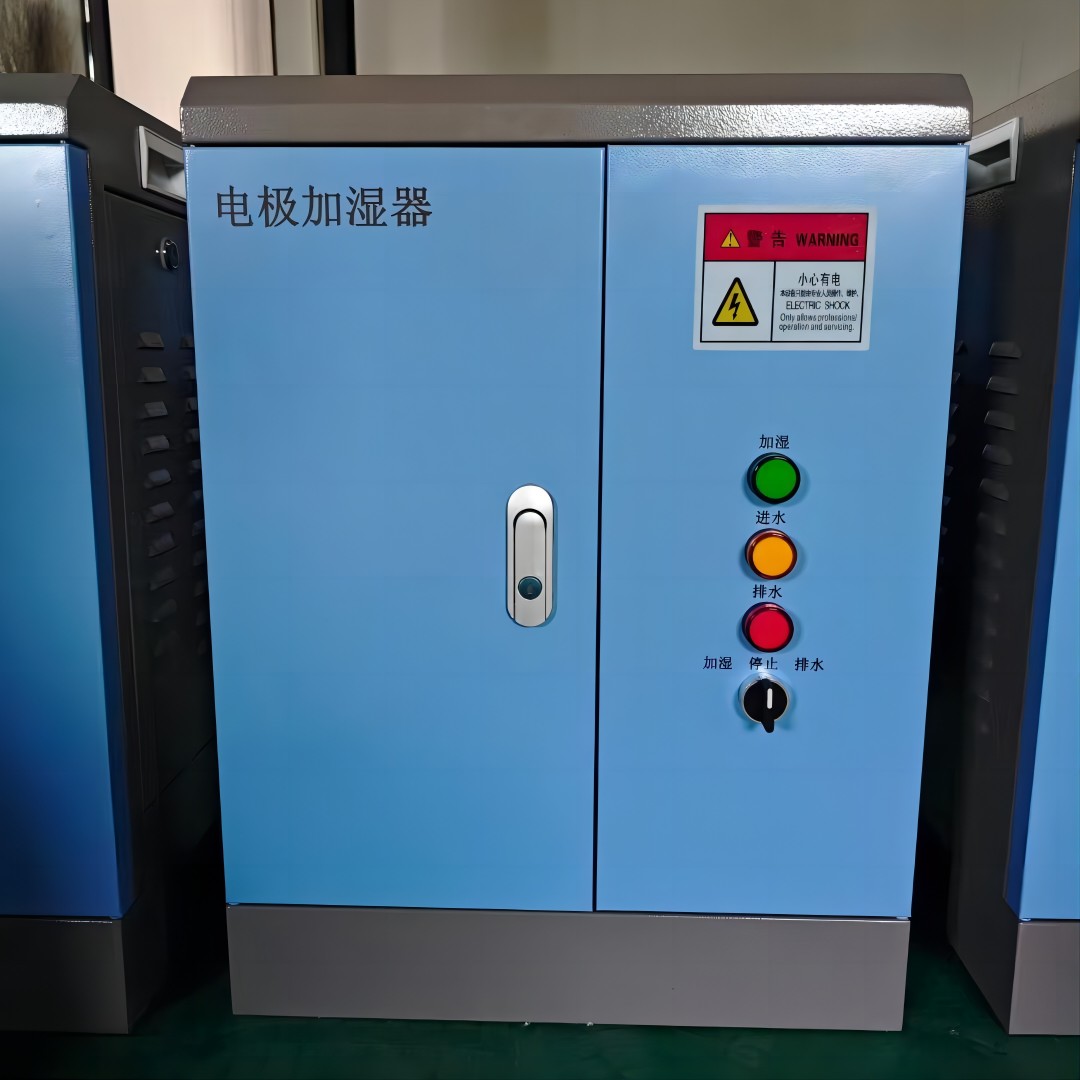 利用水的导电性,通过水导通两端电极,从而使水得到加热沸腾产生蒸汽输出,通过相应的控制设备达到加湿效果。由于是利用水的导电性来工作的,因此该类机器不可使用纯水.电极蒸汽加湿器工作时,进水阀开启,水进入电极罐底部逐渐上升接触到电极,电极通过水构成电流回路,使水分子加速运动,从而加热水并使之沸腾,水位越高所通过的电流就越大,通过调节水位的高低可以控制加湿量的大小,当水位升至适当的高点时,主控制器关闭进水阀。随着蒸汽量的不断输出,电极罐中的水位逐渐下降,这时主控制器重新开启进水阀,给电极罐补水,使之继续产生蒸汽输出,满足加湿的需要。